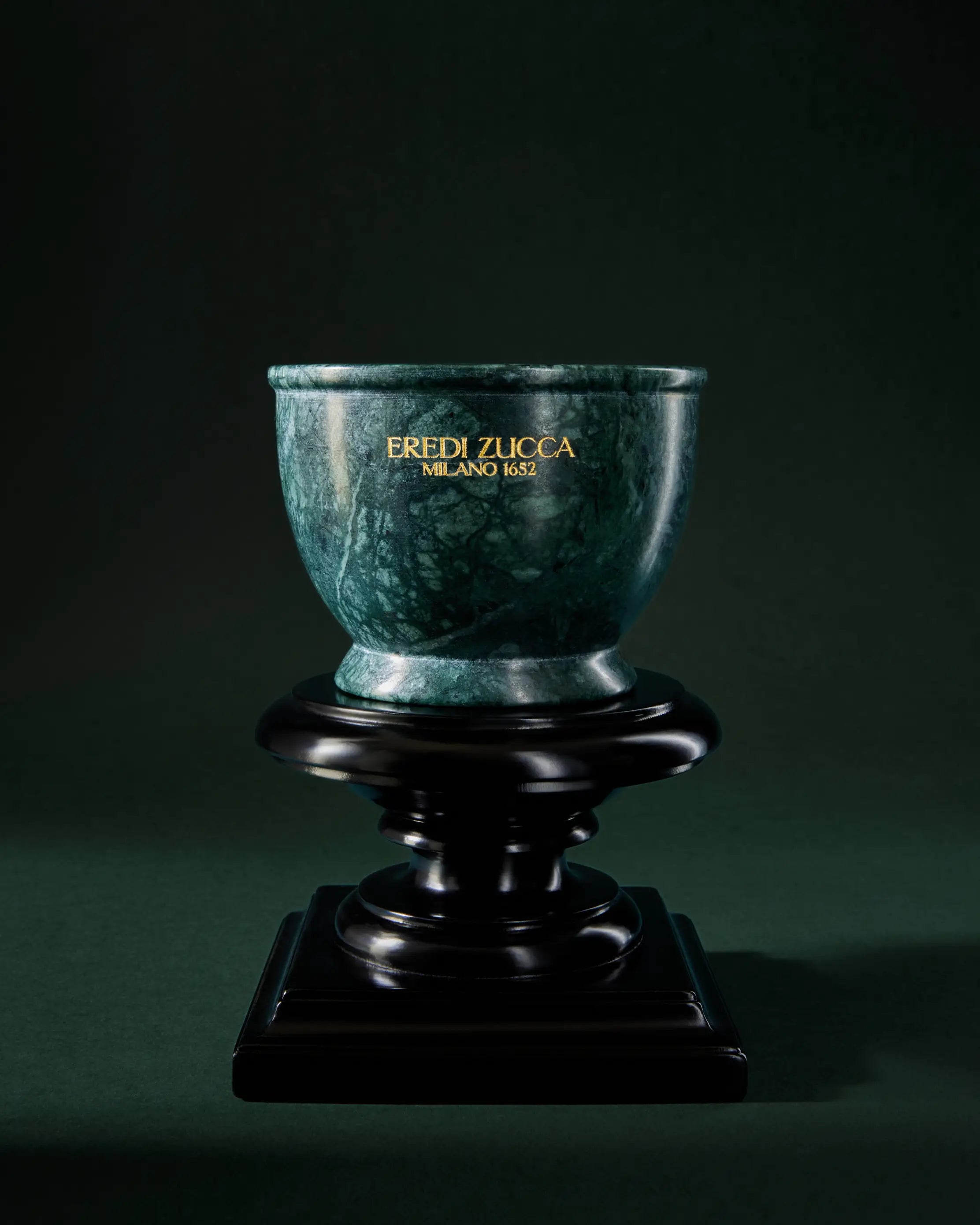 Verdi Alpi marble is a sedimentary rock distinguished by a resistant texture and unique colour variations. Sculpted by expert craftsman, this bowl is characterised by a myriad of rich green hues with white veining, showcasing the spectacular aesthetic qualities of this prestigious stone originating from Valle d'Aosta. A gold engraved Eredi Zucca logo elevates its refined design with a luxurious touch.