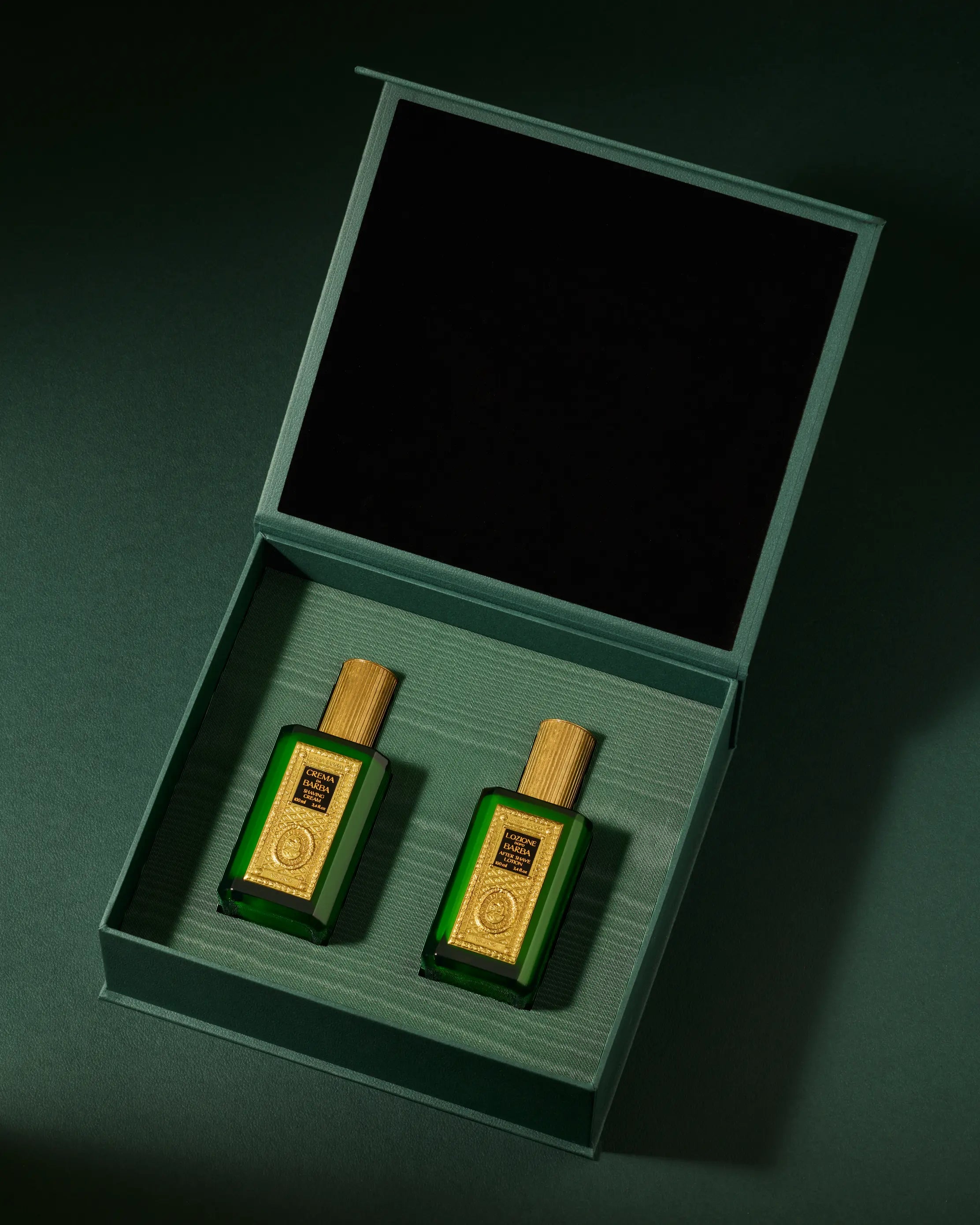 An elegant gift set dedicated exclusively to shaving, bringing together a shaving cream and after-shave lotion into one sophisticated ritual. Blending impeccable grooming with everyday convenience, the items are presented in an exclusive box embellished with signature Eredi Zucca details.