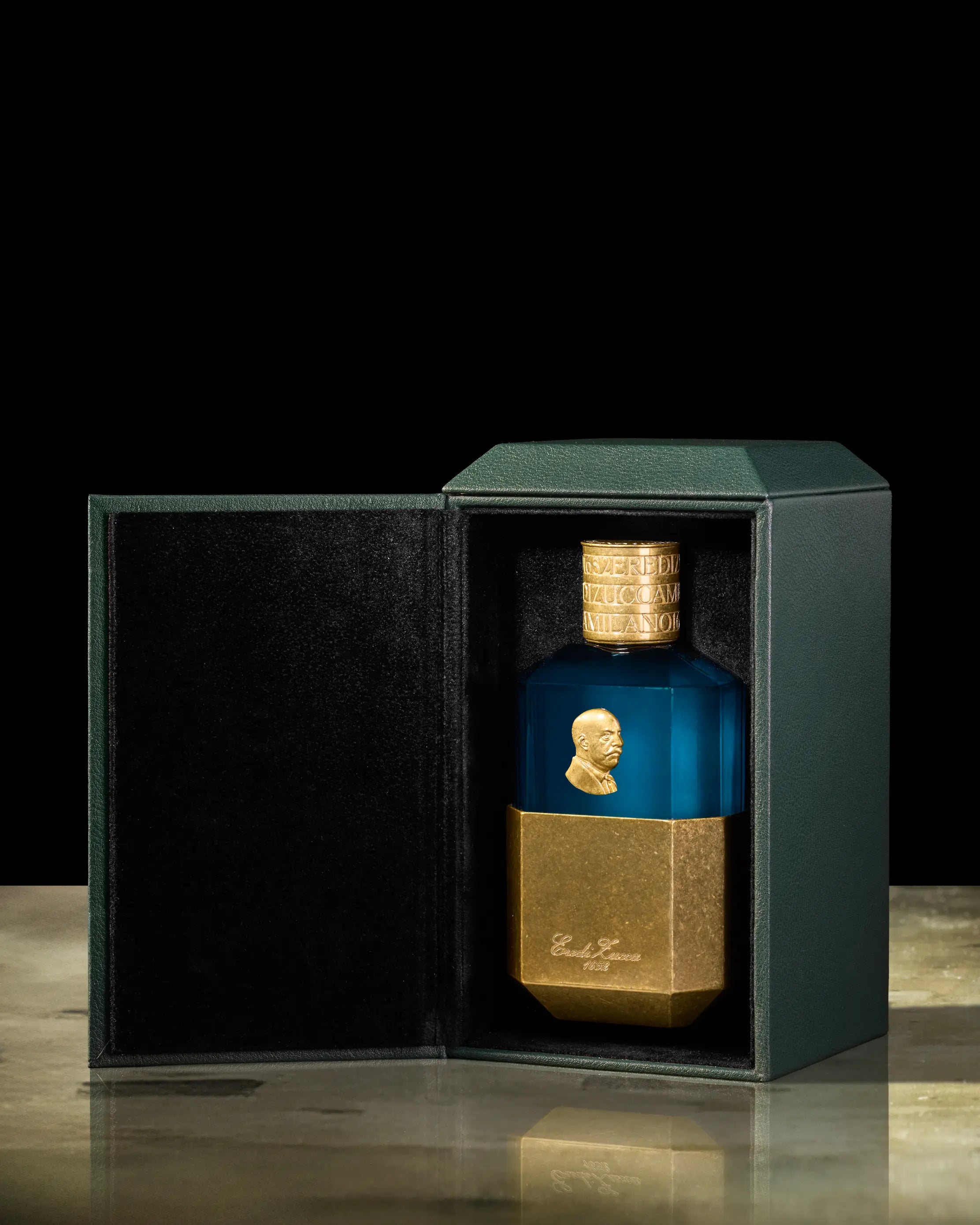 - Signature cameo motif depicting Filippo Tommaso Marinetti – the fearless voice of the avant-garde, whose Manifesto of Futurism proclaimed in Milan shaped the course of modernity