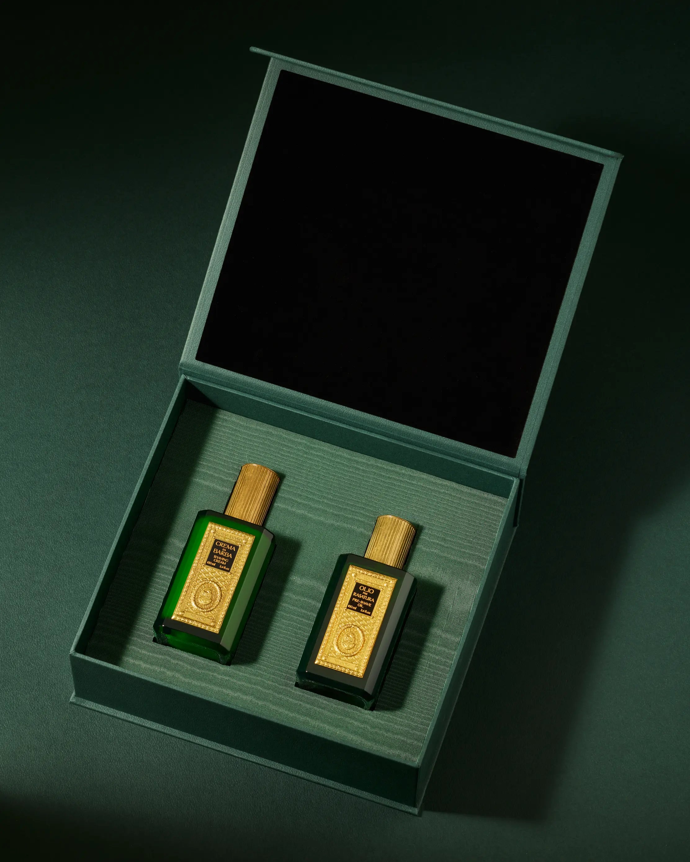 An elegant gift set dedicated to the discerning gentleman’s daily routine, comprising a pre-shave oil and shaving cream. Presented in an elegant box embellished with signature Eredi Zucca details, this duo elevates a simple gesture into a luxury experience.
