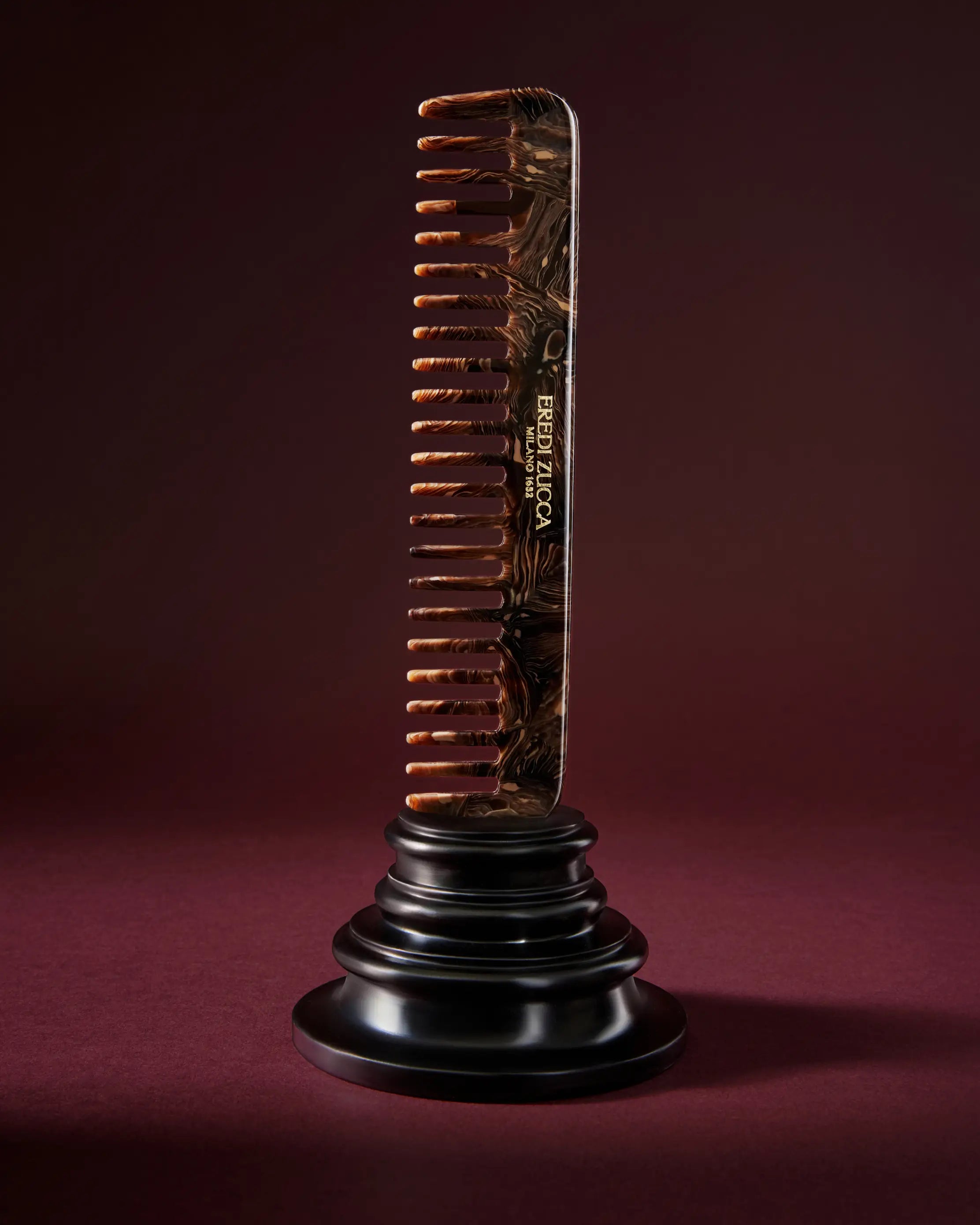 Elegant, practical and truly unique. Hand-crafted from Chocolate Carrara acetate, inspired by Eredi Zucca’s signature marble, this wide-tooth comb is designed to manage and separate even the thickest, most unruly of locks. Sturdy, compact and lightweight at once: perfect for anyone who demands only the best from their everyday hair care.