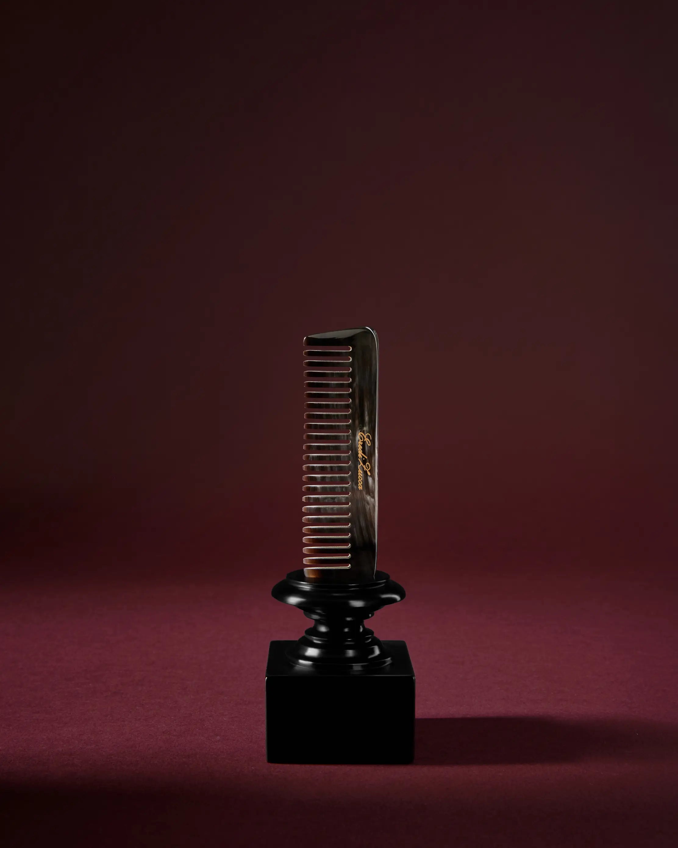 Peigne à cheveux de poche, fabriqué en corne et orné du logo Eredi Zucca gravé.