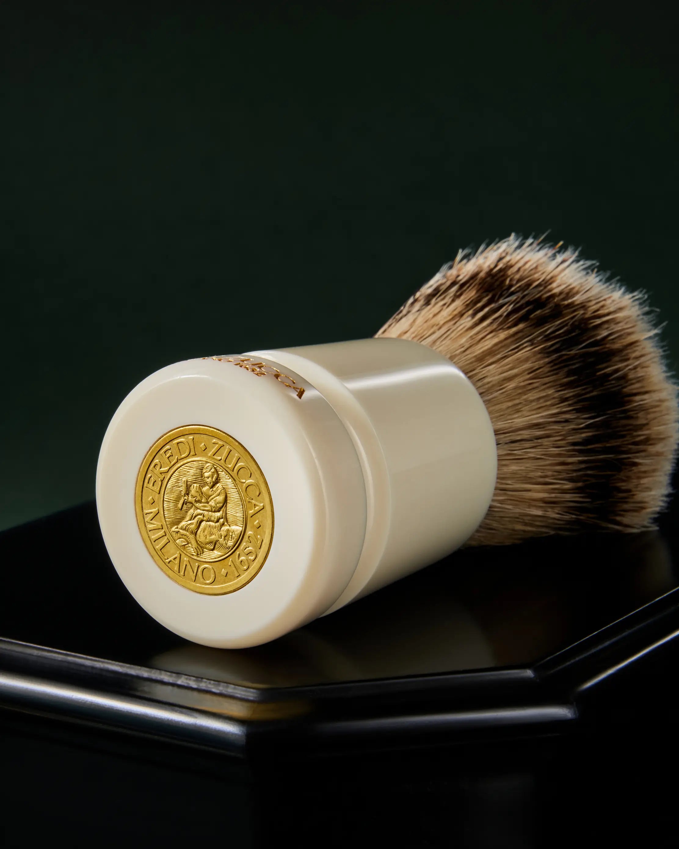 Cet accessoire brille par ses matériaux et détails, tous façonnés selon les techniques du savoir-faire artisanal italien. Son manche en résine révèle des lignes harmonieuses. Entièrement peint à la main dans un délicat ton ivoire, il est décoré avec le médaillon en laiton Eredi Zucca sur la base. Sa poignée confortable et les poils de blaireau souples font de ce blaireau professionnel un accessoire précis, robuste et fonctionnel.