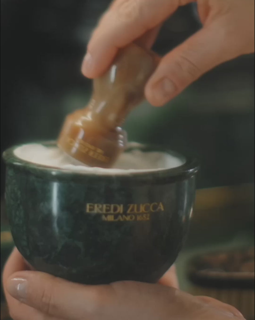 Cet accessoire brille par ses matériaux et détails, tous façonnés selon les techniques du savoir-faire artisanal italien. Arborant une texture sophistiquée effet marbré, le manche en résine révèle des lignes harmonieuses décorées avec le médaillon en laiton Eredi Zucca sur la base. Sa poignée confortable et ses poils de blaireau souples font de ce blaireau professionnel un accessoire précis, robuste et fonctionnel.