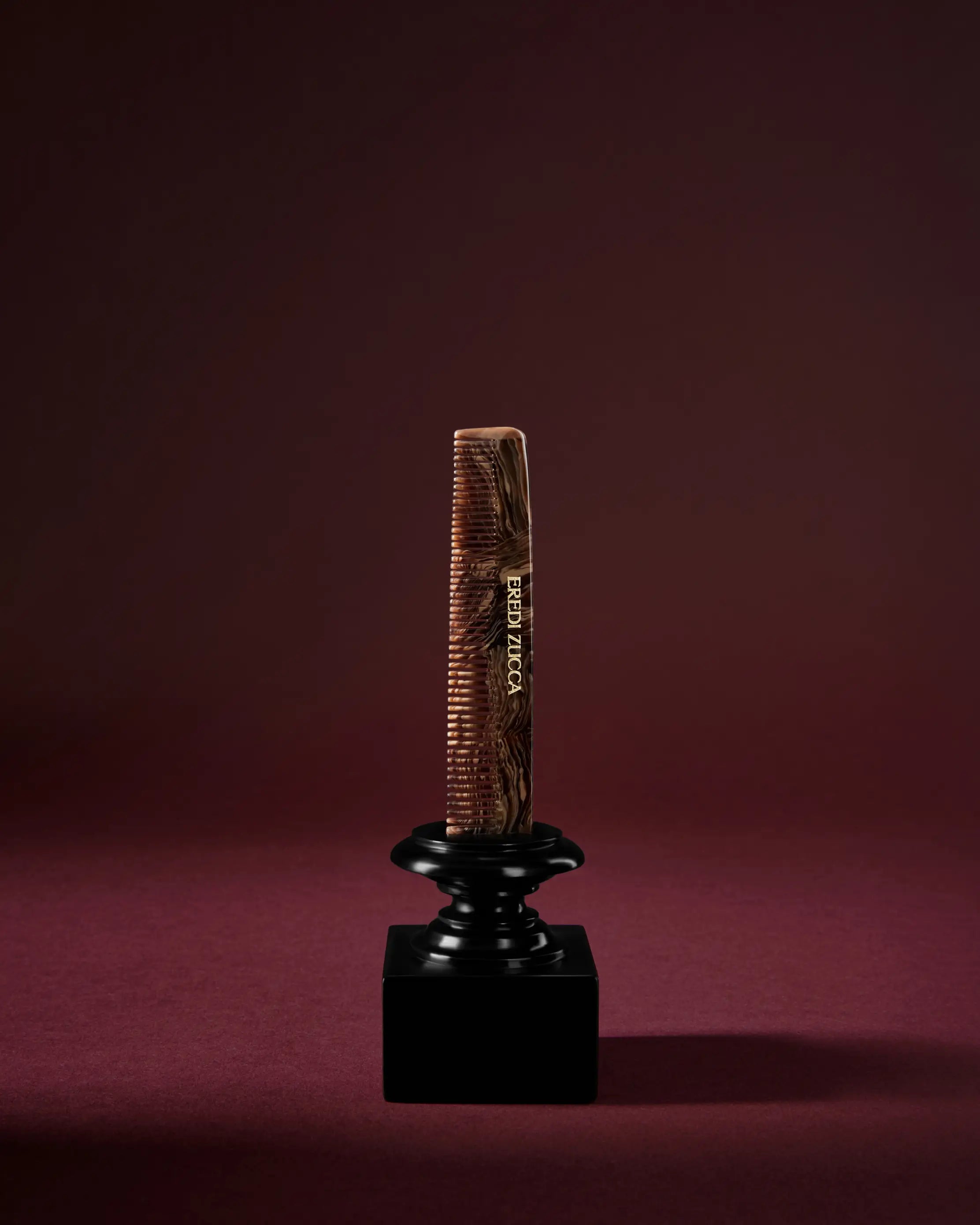 Elegante, pratico e progettato per distinguersi. Questo pettine è realizzato artigianalmente in acetato Carrara Chocolate, ispirato all'iconico marmo Eredi Zucca, ed è dotato di denti stretti per una districatura delicata e precisa. La sua struttura compatta e leggera, unita al materiale durevole, lo rende l'accessorio perfetto per chi è in continuo movimento.